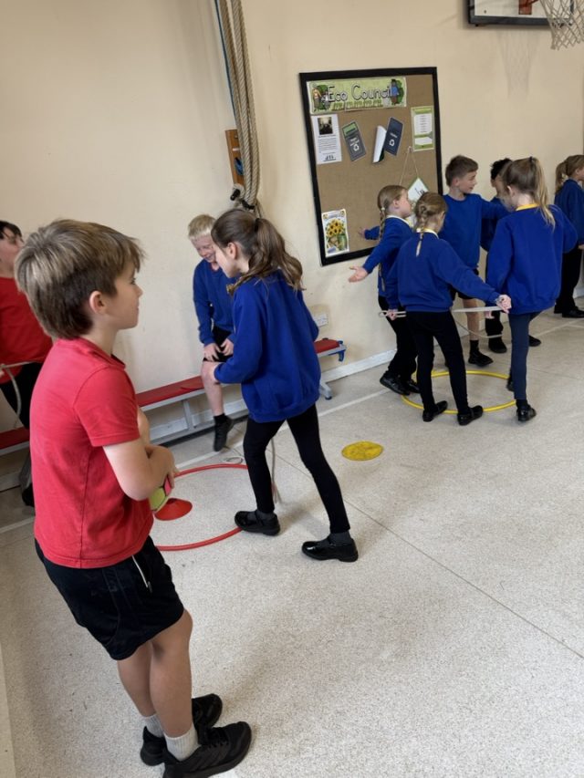 Today in Elm for PE we took part in some team building activities. We had to take different pieces of equipment across the hall only using two skipping ropes. We had to work together to ensure we didn’t drop anything! We will be doing more of these types of activities to help build our social and communication skills.