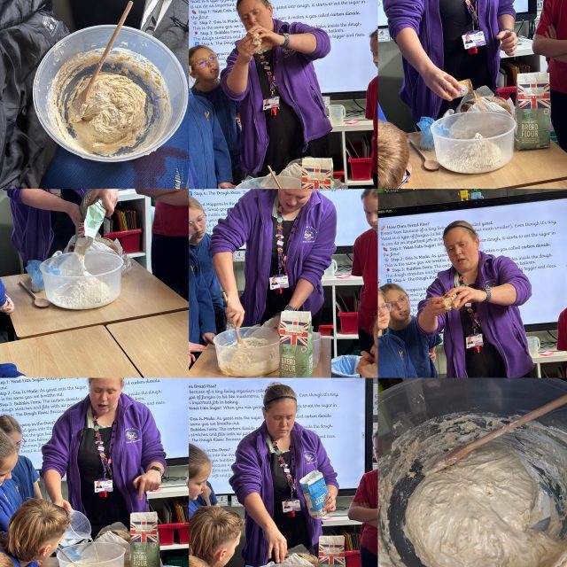 In Year 5, we conducted some different experiments and investigations this afternoon for British Science week. We made ice cream in a bag using salt water and ice. Then we looked at yeast and the effect it has on bread and how it makes bread rise.
