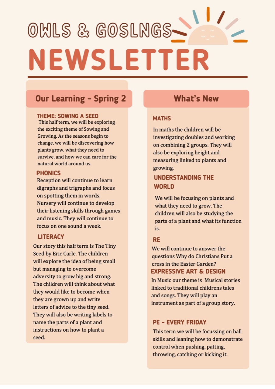 In Owls (reception) and Goslings (nursery), we strive to ensure that all children have high levels of well-being and enjoy their day through exciting experiences both inside and outside of the learning spaces. Through carefully designed environments and activities, we aim to nurture positive emotional well-being, togetherness and friendship where children can feel comfortable to snuggle down or explore with confidence. We believe children need to be able to explore freely, handling, manipulating, investigating and experiencing items and resources in order to fully understand their uses and their fragility. Much of our environment is adorned with authentic, real life objects to enhance curiosity. It is lit with softer, calm lighting and furnished with cushions and tactile materials. We use the children’s interests to plan enhancements to our curriculum with fun, enjoyable and engaging activities and dedicate time to listen to the children and give them a voice through our circle times, play and Philosophy for Children sessions. The children have time to explore and follow their own interests during the course of the day interspersed with adult-led activities which often include cooking, nature walks, singing, story time as well as phonics, maths, story times and singing.