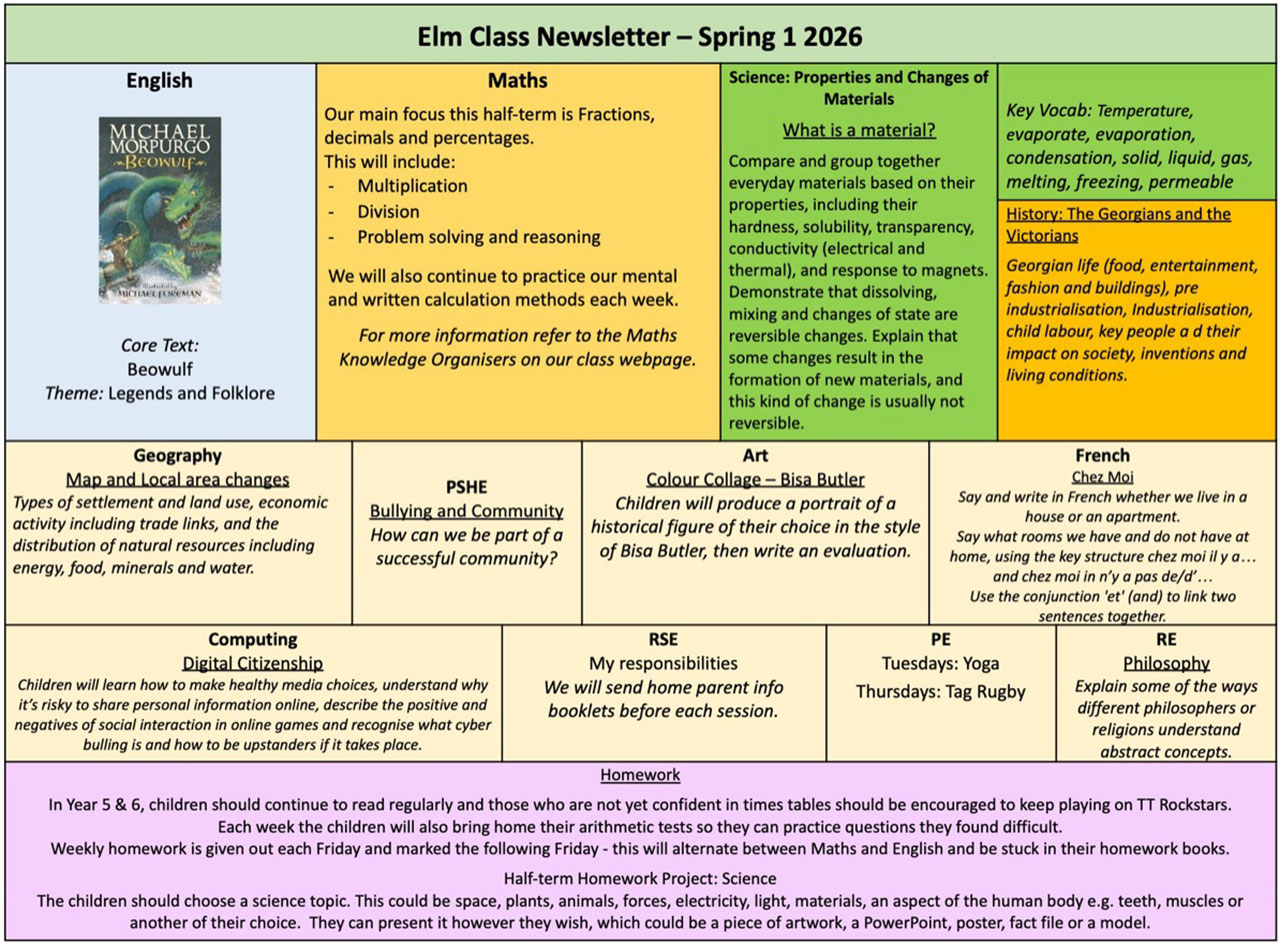 A warm welcome to the Elm Class from Miss Spearpoint, Miss Walker and Mrs Lock. The class newsletter below gives you an overview of what we are learning this half-term.