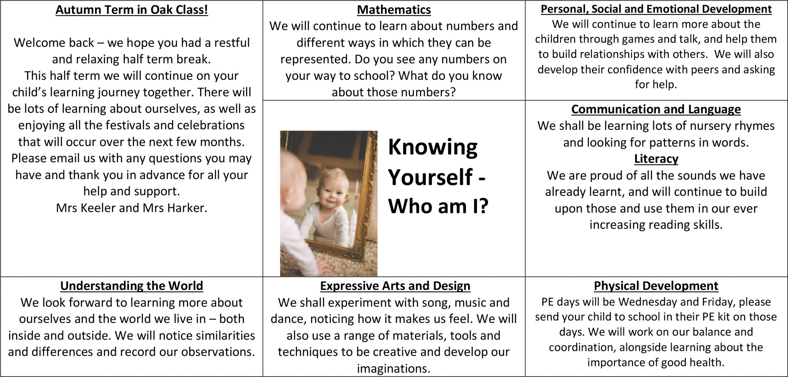 Welcome to the Oak Class page! Please find below lots of information about what we have been learning about at school and ways to help your child at home.