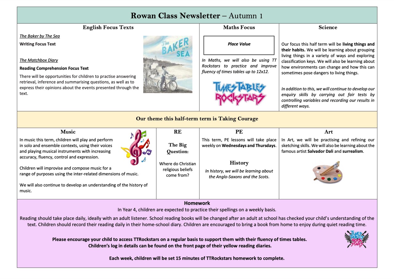 Welcome to the Rowan Class page. Have a look at our class newsletter to see an overview of what we will be learning this term.